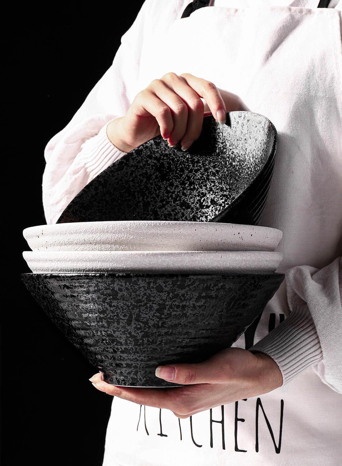 • PRO-GRADE CERAMIC BOWLS - These Kanwone pho bowls are made of premium ceramic, LEAD-FREE and NON-TOXIC, chip-resistant. Microwave, oven, dishwasher, and freezer safe. A ceramic ramen bowl keeps your ramen hot for a longer period of time than its melamine or plastic counterpart. And the hand-crafted glaze looks beautiful and unique.