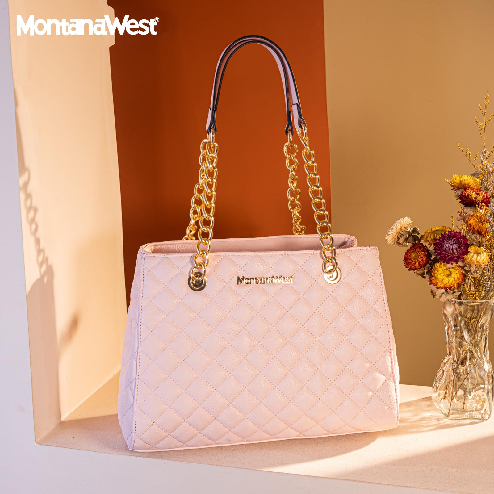 Montana West Tote Bag for Women Top Handle Shoulder Handbag Medium Satchel Purse with Chain Strap Hobo Christmas Gift MWC-040PK